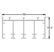 Este modelo es el más recomendado para instalaciones de uso intensivo y de grandes dimensiones. Los paneles de cristal se apoyan y desplazan por las guías del suelo, evitando que la estructura tenga que soportar su peso.